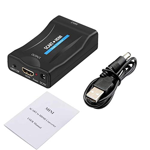QGECEN Convertitore da Scart a HDMI, Adattatore Scart HDMI per TV STB VCR VHS DVD Xbox PS1 PS2 PS3 WII