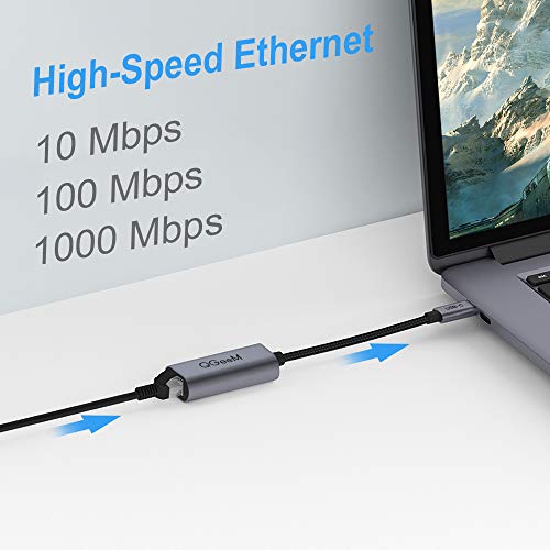 QGeeM Adattatore da USB C a Ethernet, Cavo Adattatore Gigabit Ethernet di Tipo C, Adattatore convertitore da Thunderbolt 3 a RJ45 LAN Compatibile per MacBook PRO, Adattatore da RJ45 a USB C