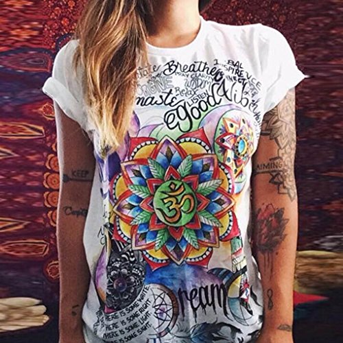 QHGstore maglietta donne gufo lettere occhio maglietta della stampa allentata solido di colore girocollo a maniche corte NO.3 L