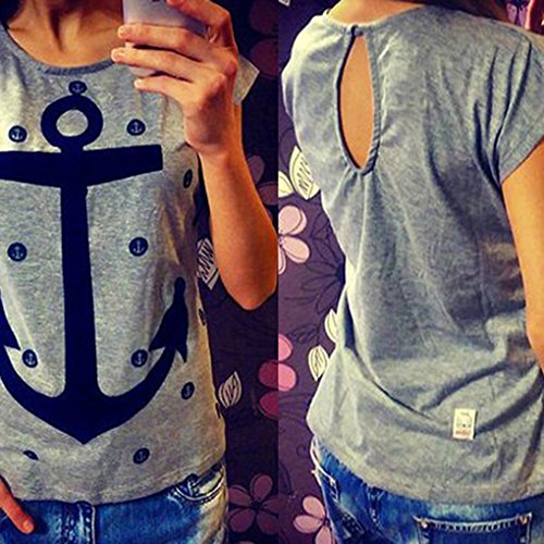 QHGstore T shirt Plus Size Lettera Casual Stampa di ancoraggio Top cotone manica corta T shirt Blu navy M