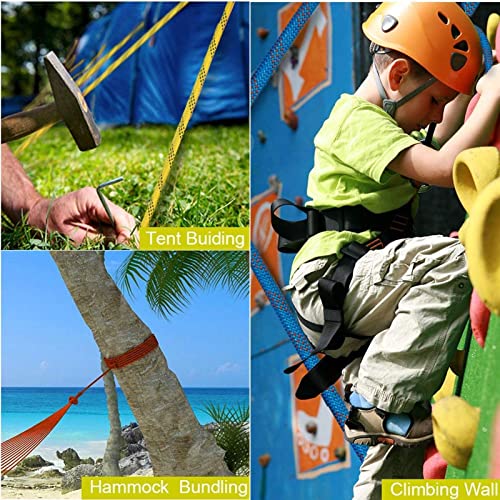 【Ampia applicazione】 - Puoi essere ampiamente utilizzato per l'arrampicata, il soccorso antincendio, la sopravvivenza al fuoco, l'ancoraggio del carico di camion, l'imbracatura, l'amaca, l'altalena, la linea guida della tenda, lo stendibiancheria, l'ancoraggio artigianale/generale, la corda per lo sci d'acqua e sulla neve, la sicurezza della piscina . Nota: questa corda da arrampicata è con