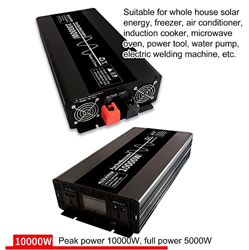 QHYXT Inverter a Onda sinusoidale Pura, convertitore di Tensione da CC 12v/24v/48v a CA 220v, Display a LED, con Presa Universale 2 *, per Tablet, Sistema Solare, Campeggio, 48V-10000W