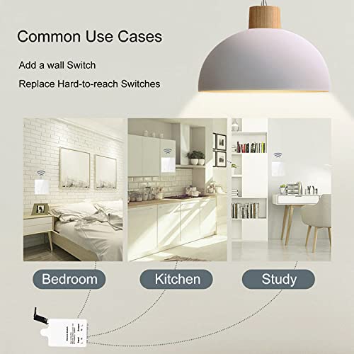【Interruttore a parete rimovibile e telecomando portatile, mini ricevitore】 L'interruttore a parete con telecomando RF bianco può essere installato in qualsiasi punto della casa senza la necessità di rimuovere la parete per il cablaggio;