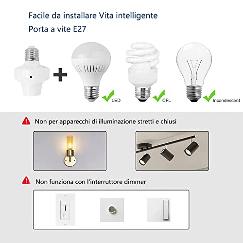 【Compatibile con le lampadine】Non richiede driver o software, è facile da usare. Compatibile con diverse lampade, come quelle a filamento e a LED. Tipo di presa: E26/E27, Tensione: AC 85~250V, 50/60Hz