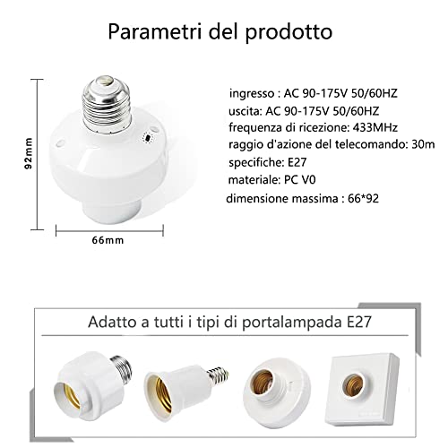 【Ampia applicazione】telecomando senza fili E26/E27 adattatore presa portalampada, per il controllo di elettrodomestici e decorazioni per le vacanze come Natale, compleanno.