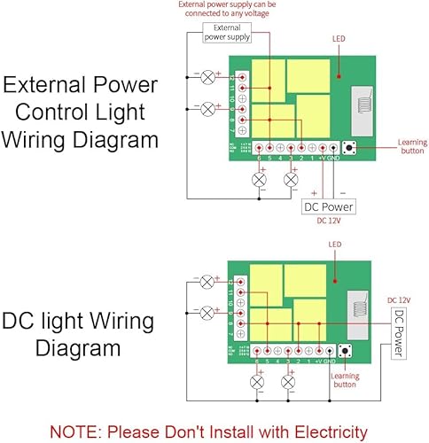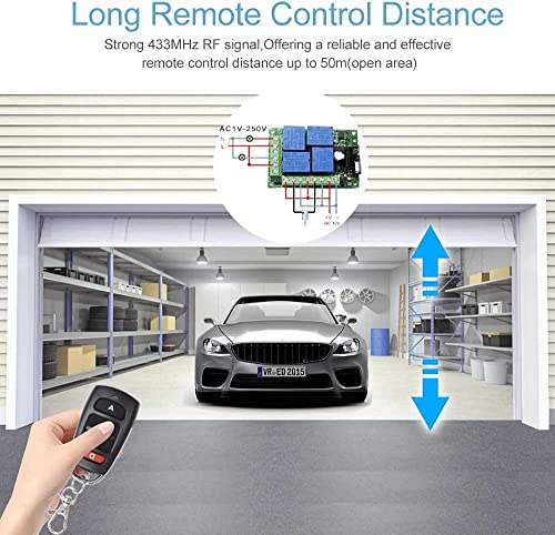 【4CH per maggiore controllo e sicurezza】 Modo di lavoro regolabile, acceso / spento. Cambia momentaneo / Attiva / Chiuso. Tutti i kit di interruttori di controllo remoto supportano una frequenza di 433 mhz. Il codice di apprendimento ha una sicurezza di alto livello per la sua bassa frequenza ripetitiva e la modalità di ri-apprendimento, con la quale può eliminare il vecchio codice e riapprendere un nuovo codice quando si perde un telecomando, quindi si ha sempre il controllo su di esso.