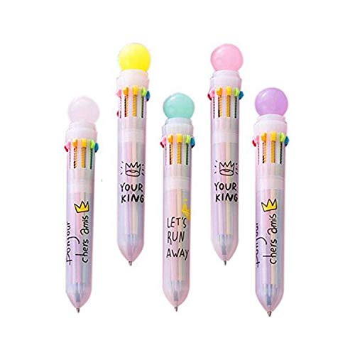 Qiajie 5 penne a sfera 10 in 1 multicolore da 0,5 mm a scomparsa, per ufficio, scuola, studenti, bambini (colore casuale)