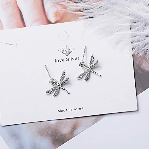 Qiamni - Orecchini da donna in argento Sterling 925, con libellula, con zirconia cubica, regalo di Natale, Argento sterling Zirconia cubica, Zirconia cubica