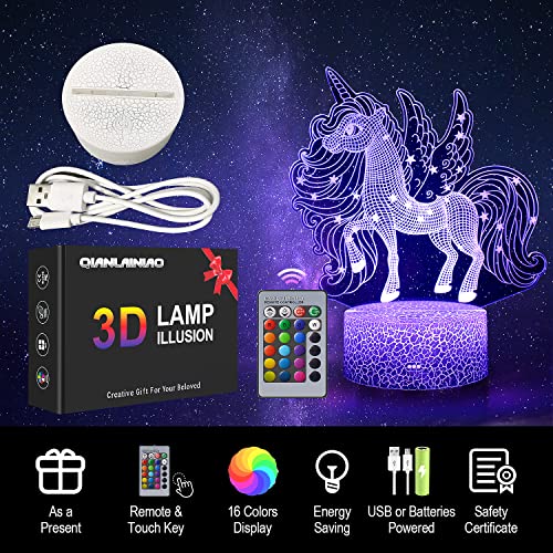 QIANLAINIAO Luce Notturna Unicorno per Bambini, Lampada Unicorno 3D 16 Colori Cambiano con Telecomando, Regali Unicorno Giocattolo per Ragazze, Decorazione di Compleanno Natale Luci Unicorno