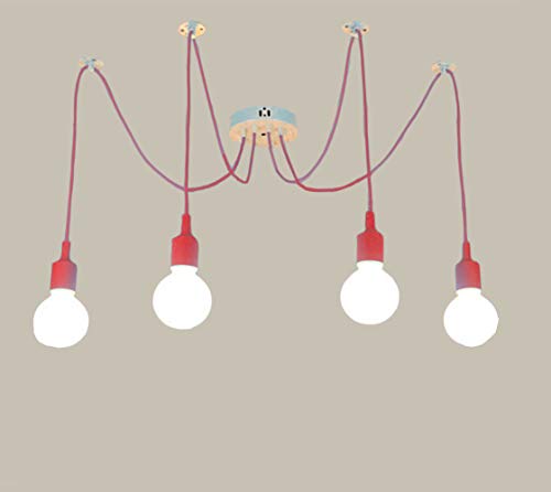 Qianliniuinc Lampada a Sospensione 4 Testa Paralume - Plafoniera Vintage Nordico Apparecchio Lampadario Sala da Pranzo Bar Bagno Balcone Cucina Illuminazione(Lampadina Non è Inclusa) Rosso