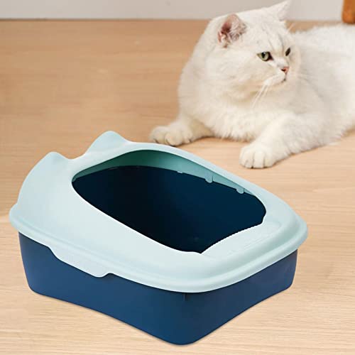 Qianly Lettiera per gatti Open Top Lettiera per animali domestici Antispruzzo Confortevole Semichiusa Robusta Vasino Toilette Lettiera per gatti, Blu