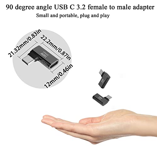QIANRENON 20Gbps USB C 90° angolo Adattatore 100W Type C 3.2 maschio a femmina retto angolo Connettore,trasferimento audio/video,per smartphone tablet steam deck,nero lucido,2Pcs (piegatura laterale)