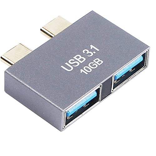 QIANRENON Adattatore doppio USB C per notebook da 2 USB C maschio a 2 USB 3.1 femmina con connettore di estensione 10Gbps, per MacBook Pro/Air, alluminio, grigio