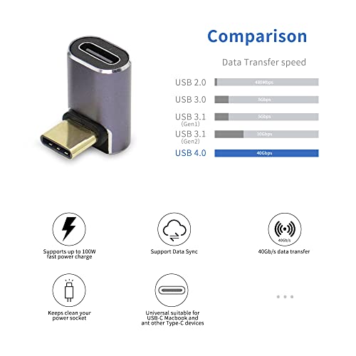 QIANRENON 40 Gbps USB C 90 ° Angolo Adattatore USB4.0 C Femmina a Maschio Angolo retto Accoppiatore, Supporto 8K video e audio Trasmissione, per Laptop Tablet Phone, 2 Pcs (piegatura avanti)