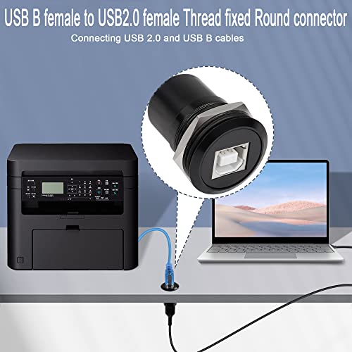 QIANRENON USB B a USB2.0 Filettato Fissaggio Stampante Adattatore USB Type B Femmina a USB2.0 Femmina Pannello Montaggio Rotondo Connettore, per Stampanti, Scanner,3,5' Rimovibili unità, Monito