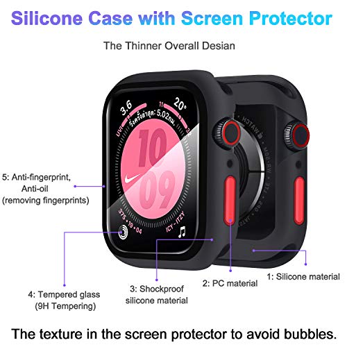 Qianyou per Apple Watch 44mm Series 6/SE/5/4 Cover Silicone+Protezione Schermo Vetro, TPU Custodia Protettiva in Vetro Temperato Integrata, Case 360° Ultra Sottile Bumper Protettivo per iWatch 44mm