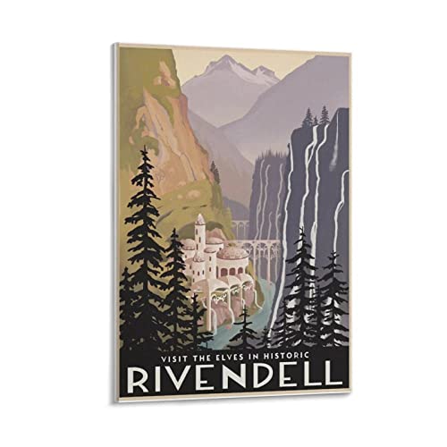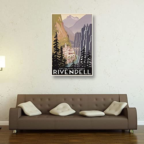 QIANZHENG Rivendell LOTR Poster di viaggio - Il Signore degli Anelli - Retro Vintage Poster su tela stampa artistica da parete stampa artistica da appendere foto decorazione casa poster opere d'arte