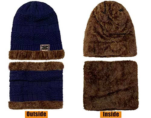 QICEDER Cappello Uomo Donna Invernale Berretto Uomo in Maglia con Sciarpa Caldo e Sciarpa Circolare Set (Blu Scuro)