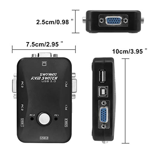 QiCheng&LYS KVM Switch Box 2 Porte PC Monitor Switch Box per Computer/Tastiera/Mouse, Plug And Play