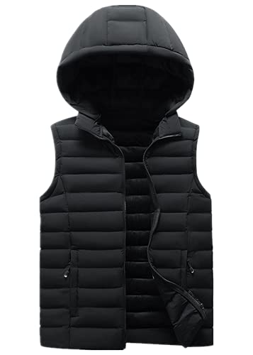 Qichenx Gilet con Cappuccio Staccabile Smanicato Imbottito Caldo Invernale Giacca da Lavoro Senza Maniche Giubbotto Casual con Zip con Cappuccio Gilet da Esterno (Nero, 5XL)