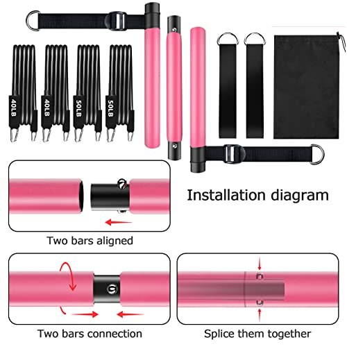 Barra da allenamento portatile: la barra per esercizi è composta da tre tubi in acciaio ed è rivestita con schiuma morbida per una presa salda. La barra portatile per pilates è staccabile e leggera, un ottimo set di allenamento portatile per donne e uomini a casa, in palestra, in ufficio o in viaggio. E una pratica borsa organizer per riporre i set di allenamento in modo da poterti allenare rapidamente in viaggio.