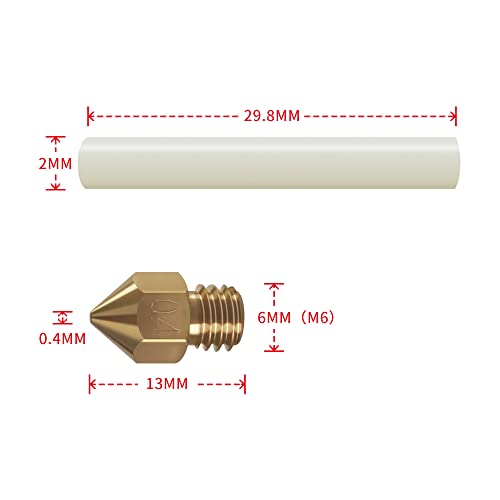 Con tubo in PTFE: Lunghezza del tubo in teflon: 2pcs*29.8MM Diametro interno del tubo in PTFE: 2mm uso per filamento da 1.75mm. È progettato per resistere alle più alte temperature del mercato ed è perfetto per i filamenti della stampante come PLA, ABS, TPU, PETG.