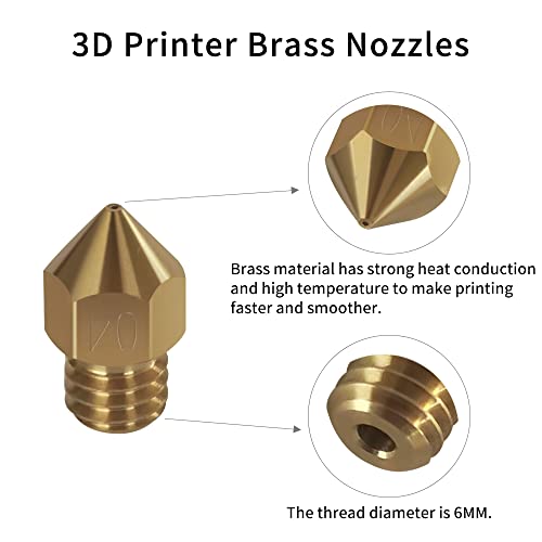 Ugelli in ottone da 0,4 mm: gli ugelli dell'estrusore da 2 pezzi sono realizzati in ottone, per una potente conduzione del calore e un'elevata temperatura che rende la stampa più veloce e uniforme. (Diametro di uscita 0,4 mm, filettatura della vite: M6)
