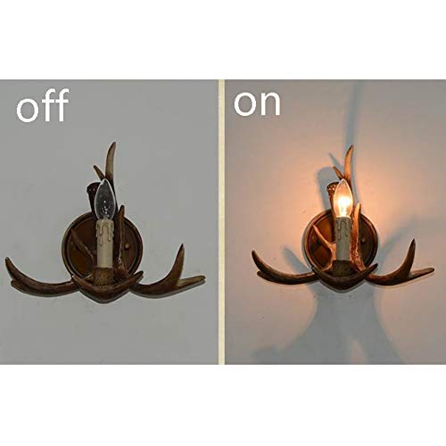 QIFFIY Lampade da parete Lampada da parete a LED decorativa in resina Applique in corno di cervo Lampada da parete retrò in cervo bianco Lampada da parete a LED in legno lampada a muro
