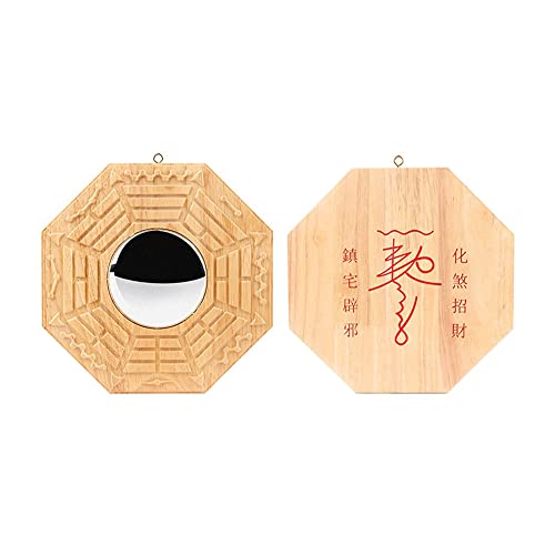 Qihuyi Specchio Bagua Feng Shui per esterni, Specchio cinese Feng Shui convesso/concavo in legno, Good Luck Bagua Specchio per la rimozione di energia negativa e protezione
