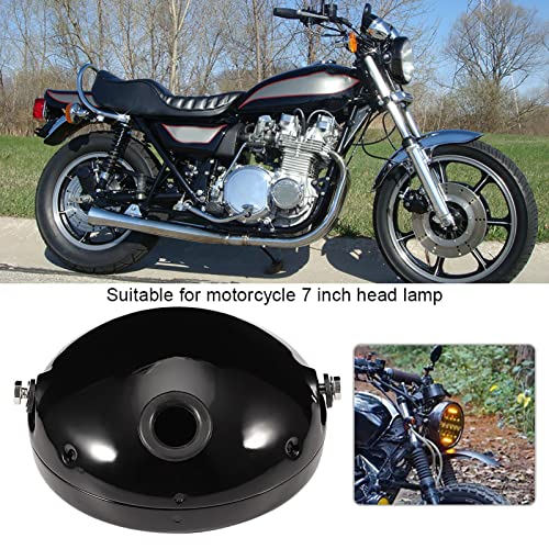 Qiilu Coperchio alloggiamento lampada faro LED modifica moto in ferro, coperchio alloggiamento faro 7 pollici(nero)