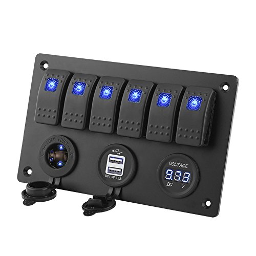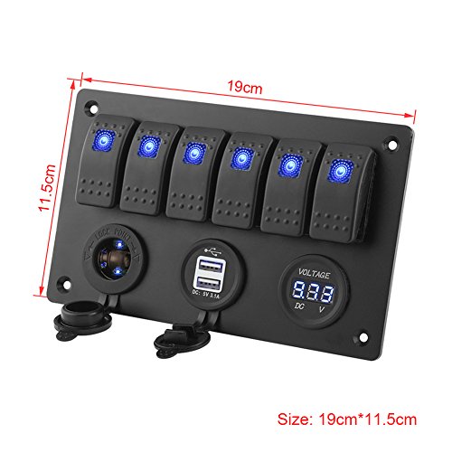 Qiilu 6 Gang Pannello Interruttore Rocker Switch Panel con Voltmetro + Doopio USB + Accendisigari per Auto RV Barca
