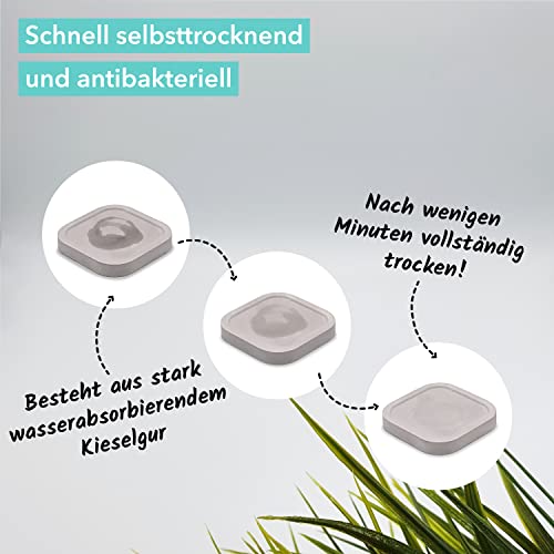 Dimensioni e consegna: 56 x 56 x 9 mm. 2 sottobicchieri per riporre due spazzolini elettrici in diatomite bianco. Gli spazzolini da denti non sono inclusi.