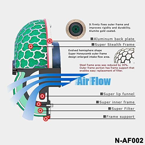 QiKun-Home Filtro Aria Universale 80mm / 100mm Testa a Fungo Filtro Aria Universale per Auto da Corsa Sistema di aspirazione dell'Aria Flusso di Pulizia Reloaded Green