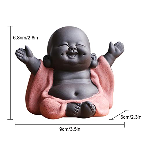 Qikuver Buddha Maitreya che ride, Statua di Buddha in ceramica Ornamento Scultura da tè Piccolo monaco Decor Set da tè per Home Office Decorazioni per auto Regalo Artigianato e arte (arancia)