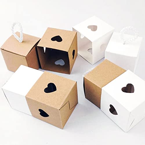 Qikuver 50 Pezzi Scatola di Caramelle di Carta Kraft, Scatole Caramelle Matrimonio, 5,5cm con Finestra a Forma Cuore, per Matrimoni Caramelle Cioccolato Rifornimenti Feste