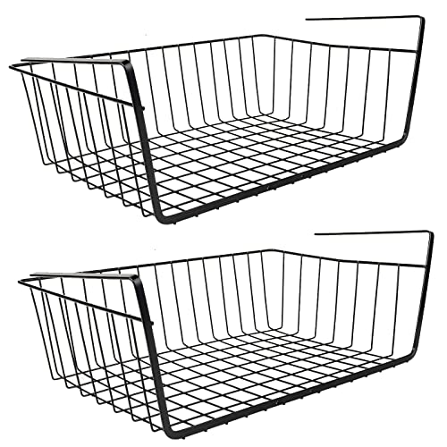 QILZO Confezione da 2 cestini portaoggetti da cucina sotto ripiano 40,5 x 24 x 14,3 cm cestino metallico per armadi cucina cesto appeso portaoggetti sotto mensola