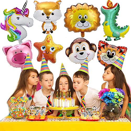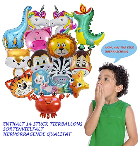 QIMMU 14 Pezzi Palloncino Foil Animali,Palloncini Animali Giungla,Palloncini ad Elio Animali,Palloncini Animali Elio per Compleanno Festa Decor