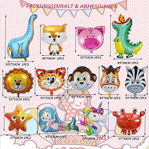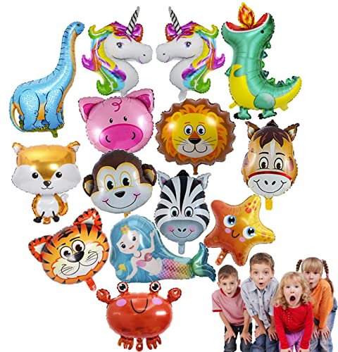 Stili multipli-Unicorno, dinosauro, animale, sirena. 14 Pezzi Foglio di Alluminio Palloncino di alta qualità, accompagnamento perfetto per la festa di compleanno.