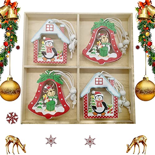 QIMMU 12 Pezzi Pendenti per Albero di Natale in Legno,Addobbi per Albero di Natale Legno,Ornamenti Natalizi in Legno da Appendere,Decorazione Albero Natale Legno,Natale in Legno Pendente