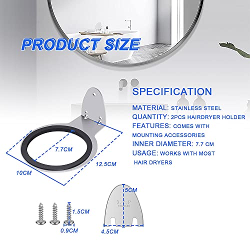 QINERSAW 2 Pz Porta Phon da Muro Porta Asciugacapelli a Muro Supporto per Asciugacapelli da Parete Porta Asciugacapell in Acciaio Inox Staffa Asciugacapelli a Stile Moderno per Bagno Parrucchiere