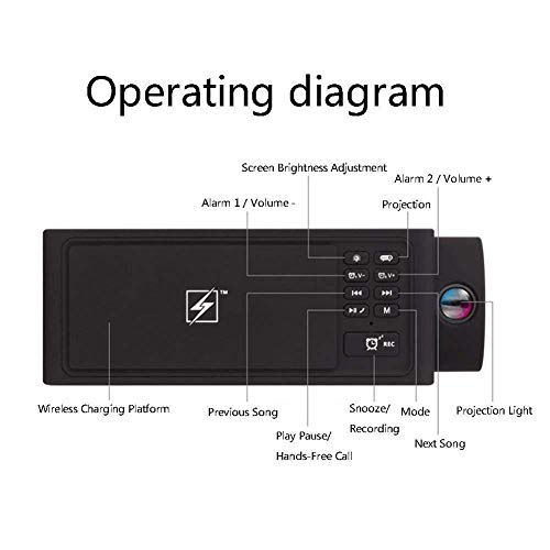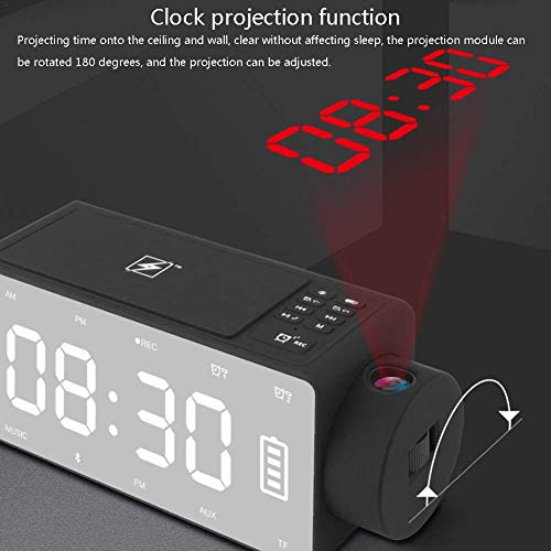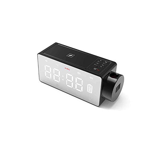 YG.QING Sveglia digitale con proiettore a LED Specchio Altoparlante wireless Bluetooth Doppio allarme Radio FM Porta di ricarica USB Regalo