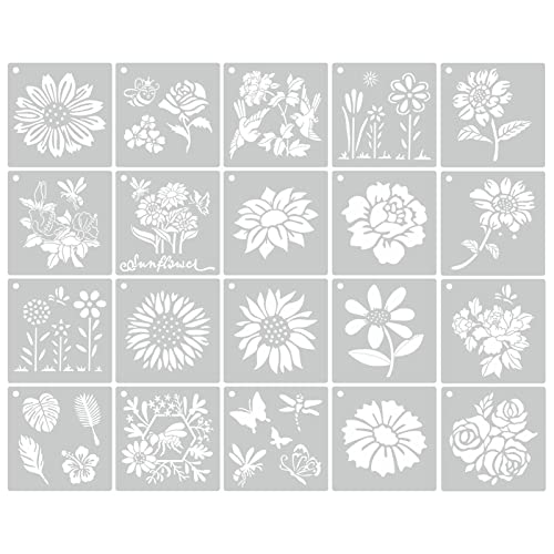 QINGD Stencil a tema girasole, stencil a tema farfalla e fiori, per pittura, artigianato, parete, fai da te, decorazione per la casa