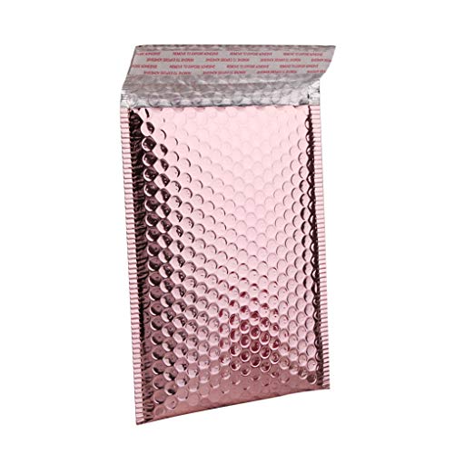 Qinghengyong 10pcs di Alluminio Bubble Mailer Peel Imbottite Peel Seal Poly Imbottite Buste Fragile Packaging Borsa, Oro Rosa, 15x20 cm