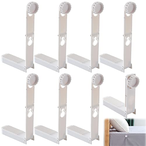 Qinglee 8 Pezzi Clip per Fogli Regolabili Altezza, Antiscivolo Ferma Clip per Lenzuola, Lenzuolo con Angoli Clip, per Coprimaterassi, Lenzuola, Bianco (QL0062a)