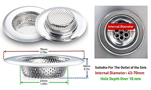 Qinglele 2 Pezzi 2,75" Filtro per Lavello da Cucina, Cucina Sink Strainer in Acciaio Inox, filtri per lavandini, Vasca da Bagno o lavelli da Cucina, 2,75"/7cm (Piccolo)