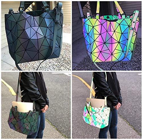 Unique Night Bright Tote Hangbag- Motivi geometrici irregolari e trattamento speciale di tessuti luminosi, i colori cambiano alla luce. otterrai così tanti complementi su questa borsa.