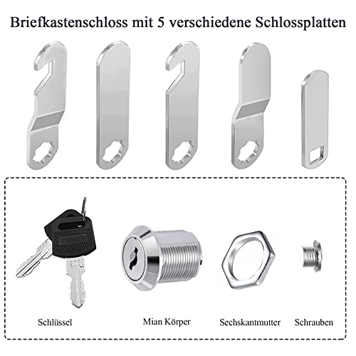 Pratico e pratico: serratura per cassetta delle lettere 1, 4 chiavi, con 5 diverse piastre di serratura. Adatto per cassetti da scrivania, armadi, vetrine, ecc.