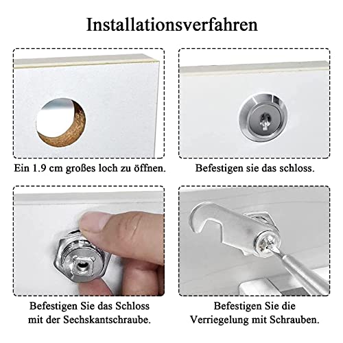 Ampia applicazione: serratura per cassetta delle lettere da 20 mm e 5 diverse piastre di bloccaggio possono essere utilizzate per materiali fino a 16 mm di spessore. La serratura a camme di serie con un diametro di 18 mm è adatta per cassette delle lettere, cassetti, armadi, casseforti, armadietti, cassette degli attrezzi, armadietti, vetrine, ecc. Proteggete non solo i vostri beni importanti, ma anche i vostri bambini da merci pericolose.