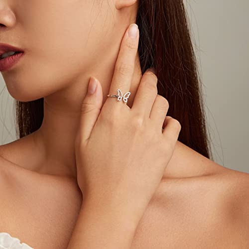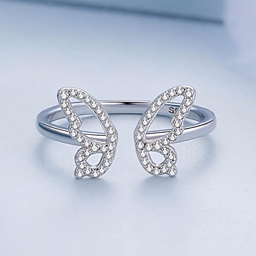 Qings Anello Farfalla Regolabile Argento 925 Cubic Zirconia Aperto Anello Anelli della Impilabile della Animale Regalo di Compleanno per Donna Ragazze