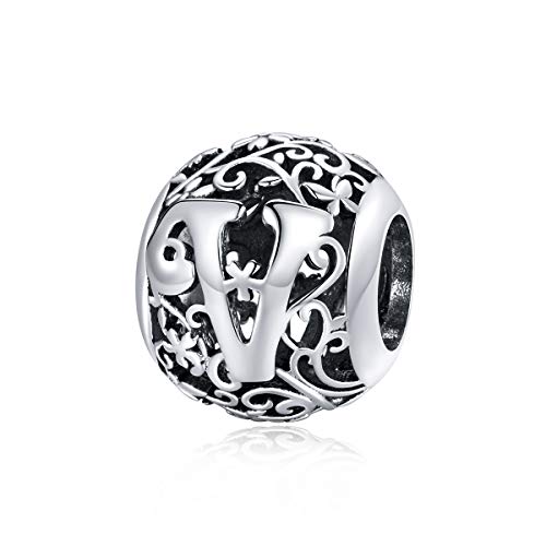 Qings Bead Charm Argento 925 Charms Lettera V Perline Lettere Alfabeto Compatibile con Braccialetti (Lettere V)